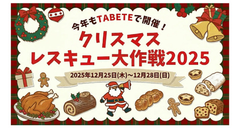 以前このブログでも御紹介したフードシェアリングサービスのTABETEで昨日からクリスマスレスキュー大作戦を開催しています!TABETEとはまだおいしく安···